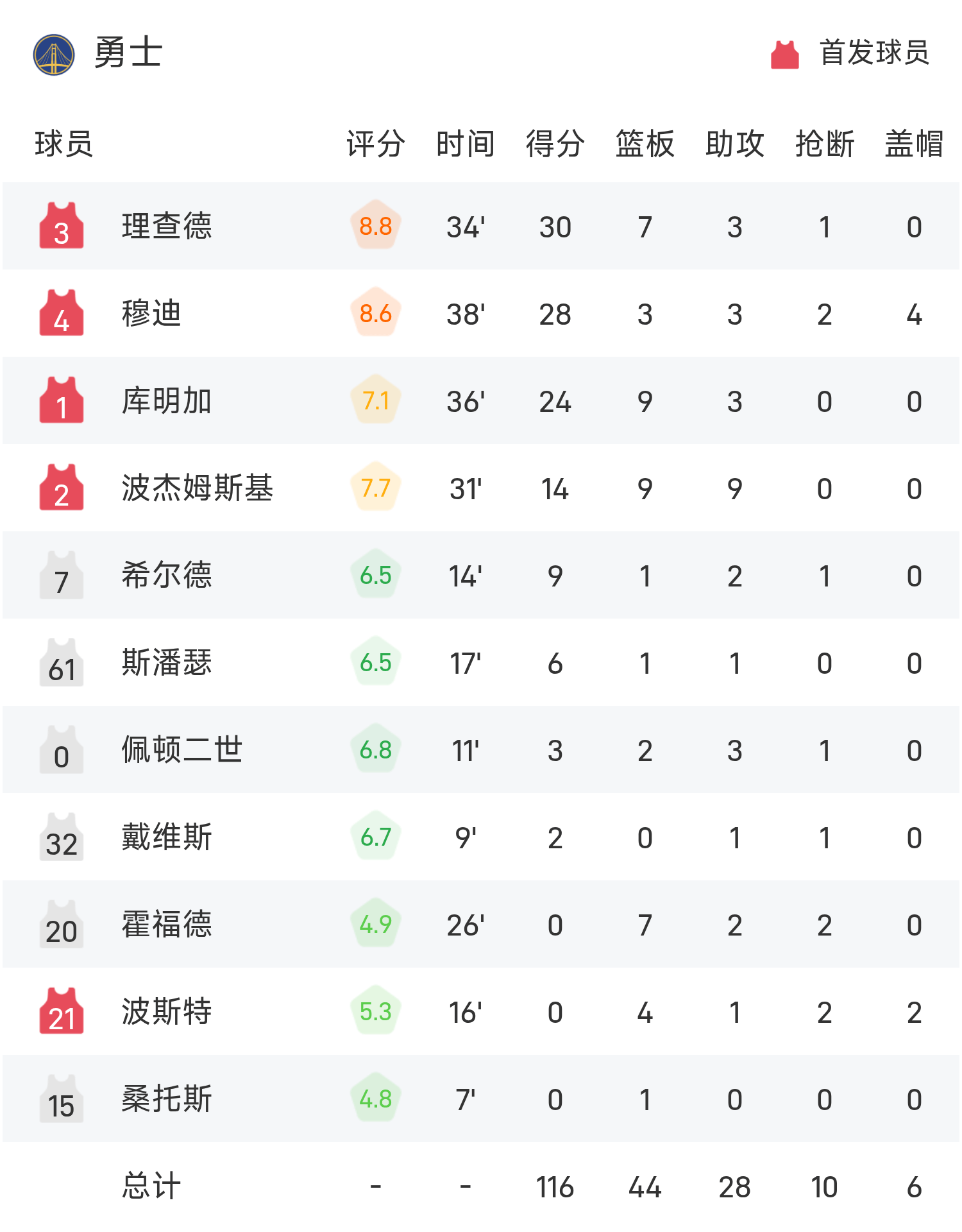 德罗赞得到25分2板2助率队取胜,理查德空砍全场最高的30分7板3助。
