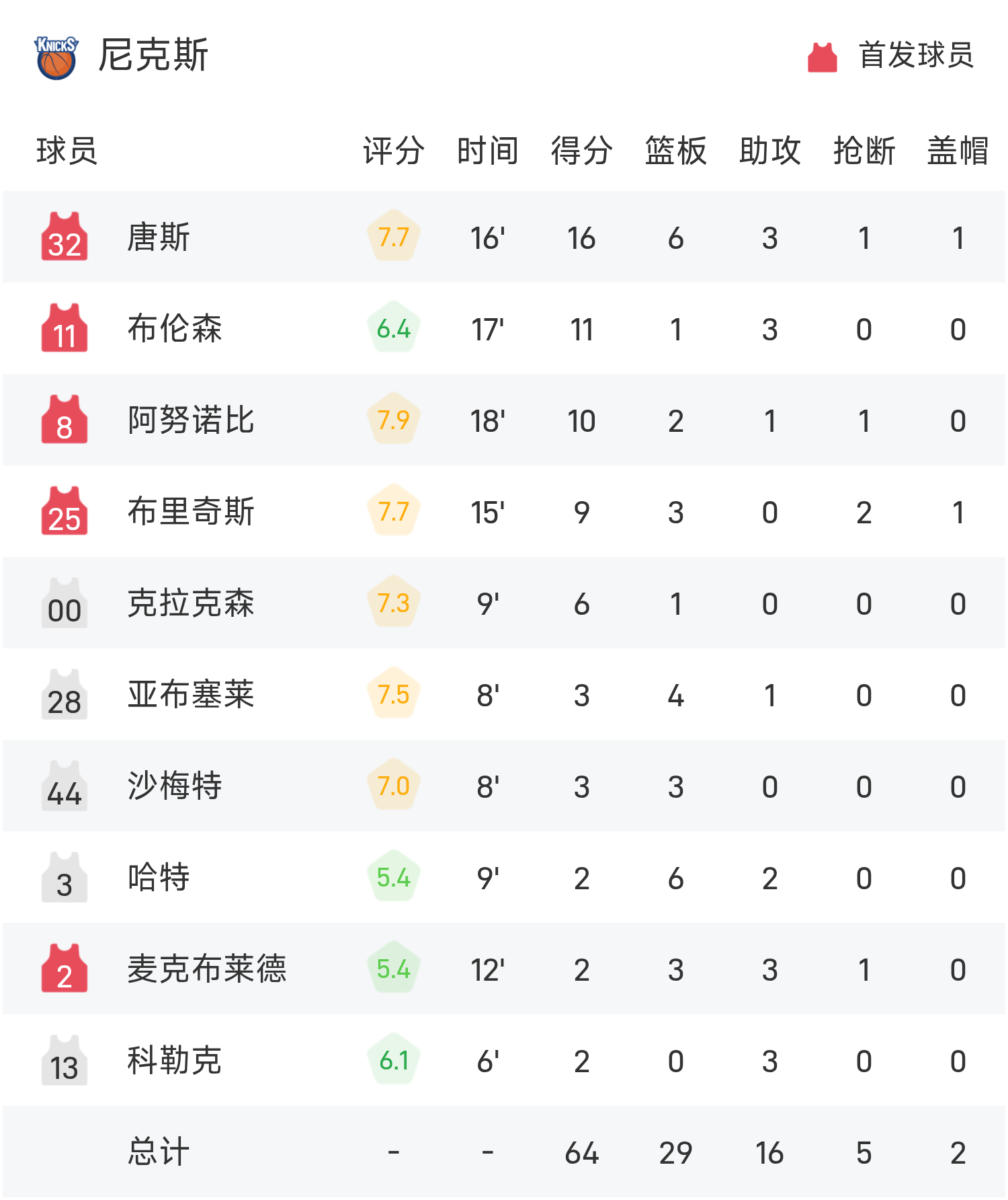 次节竞赛,绿军8分钟合砍6分,尼克斯狂轰一波28-6完成逆转局赛果分,唐斯砍下半场最高的16分6板3助。