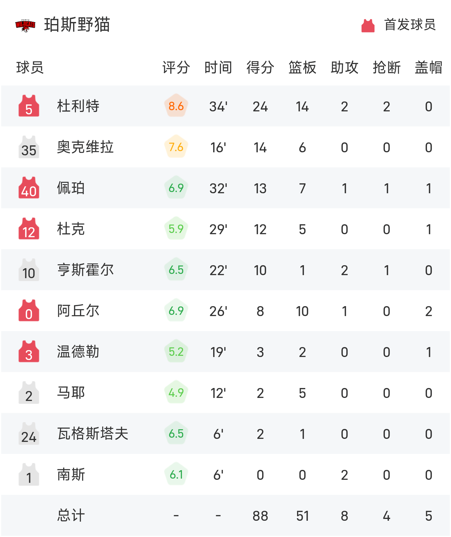 NBL战报:杜利特24分14板,野猫88-75毁坏者