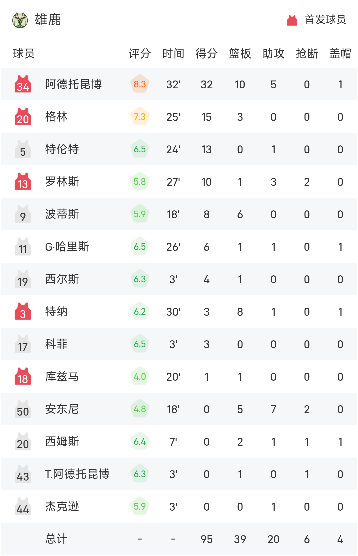 NBA战报:东契奇41分9板6助,字母哥32分,湖人119-95雄鹿