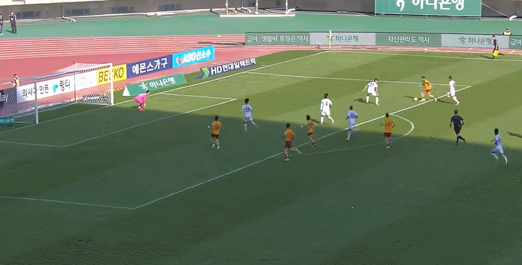 32’崔奎贤门前接应自由球传禁区凌空垫射破门,但越位在先进球无效