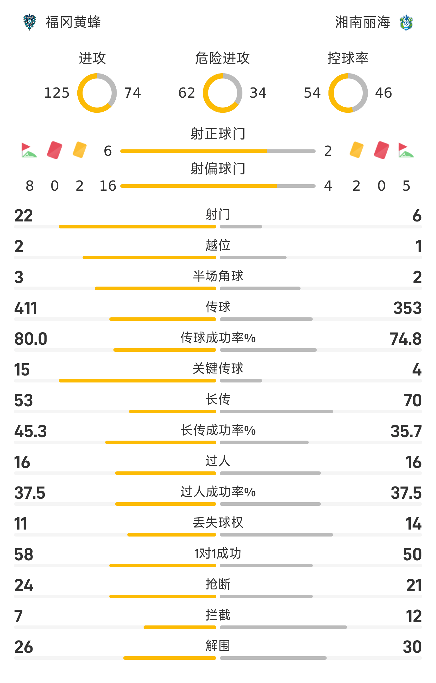 福冈黄蜂首发阵容:24-小畑裕马、3-奈良龙树、40-池田树雷人(80’5-上岛拓巳)、20-安藤智哉、29-前岛洋太、14-名古新太郎(59’17-威灵顿)、88-松冈大起、8-绀野和也(60’6-重见柾斗)、11-见木友哉、22-藤本一辉(80’47-桥本悠)、27-碓井圣生(90’2-汤泽圣人)