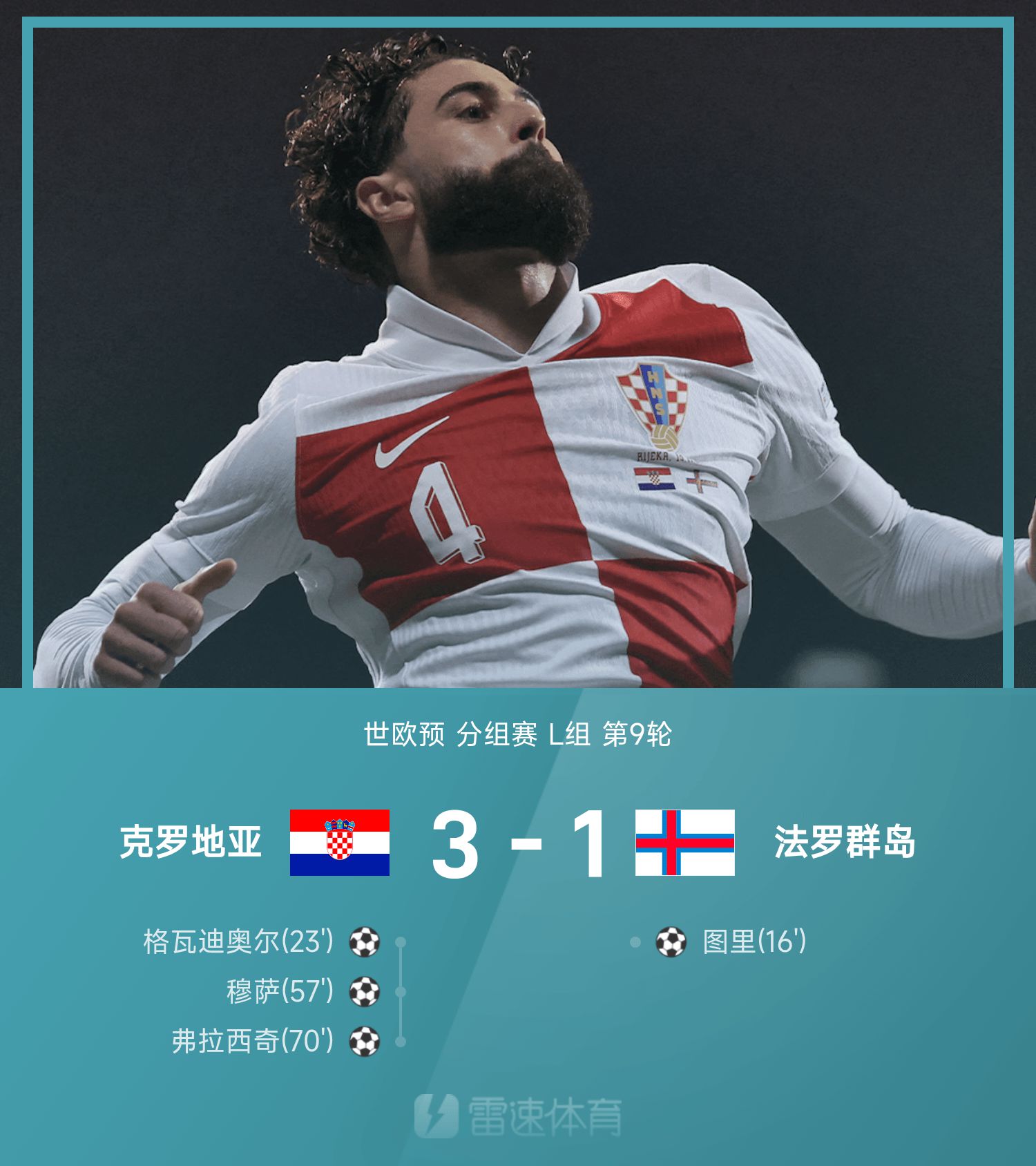 世欧预战报:格瓦迪奥尔破门,克罗地亚3-1法罗群岛晋级世杯赛