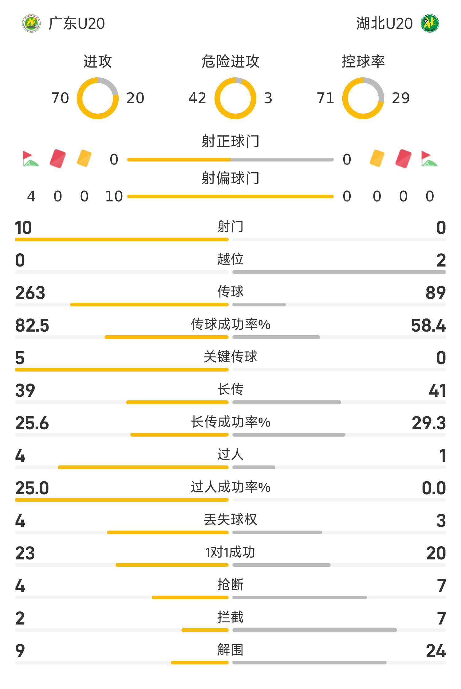 全运U20半场:钟文、袁梓楠造险,广东0-0湖北